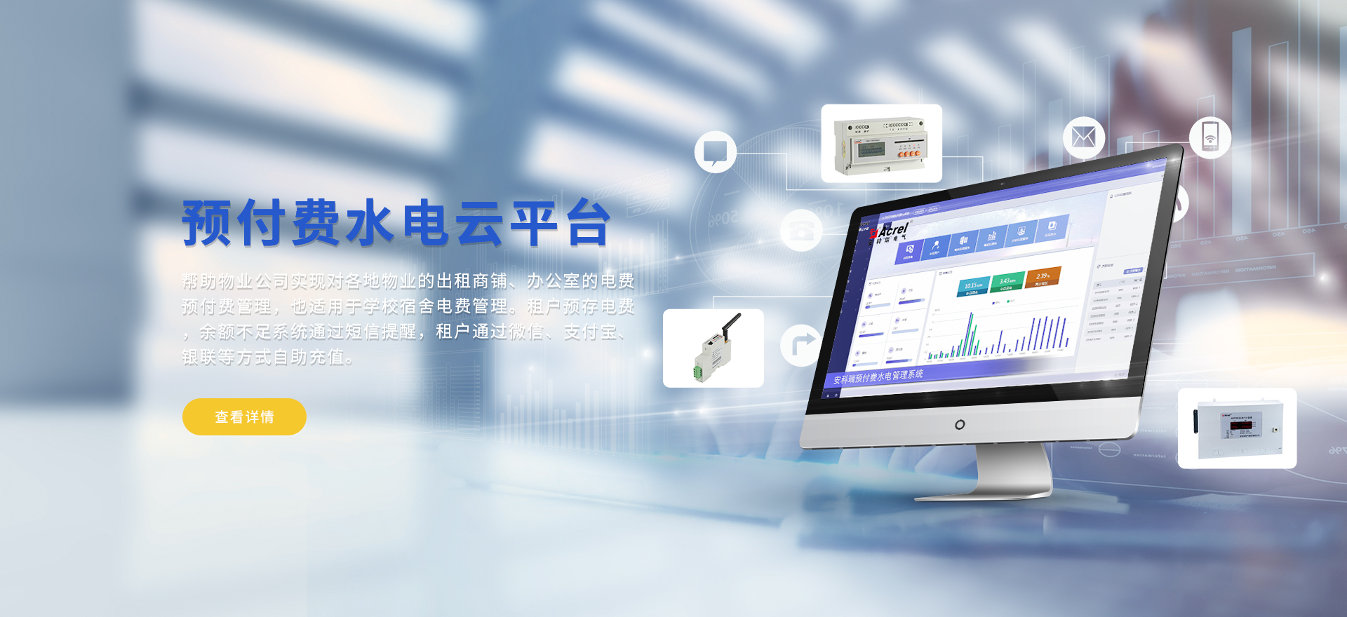 安科瑞提供的解決方案包括Acrel-EIoT能源物聯網云平臺、變電所運維云平臺、安全用電管理云平臺環保用電監管云平臺、智慧消防云平臺能源管理云平臺、工業企業能源管控平臺、遠程預付費云平臺、餐飲油煙監管云平臺電動汽車/電瓶車充電樁收費管理云平臺、電力監控/無線測溫系統、電能質量治理系統、電氣火災監控系統、消防設備電源監控系統、防火門監控系統應急照明和疏散指示系統、智能照明控制系統、醫用隔離電源絕緣監測系統等,幫助用戶實現能源智能化、可視化、精細化管理,提高用能效率和用能安全,為企業節能降耗和實現能源數字化建設提供數據服務。